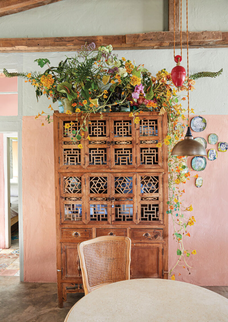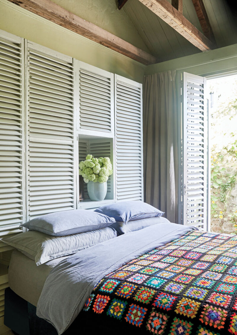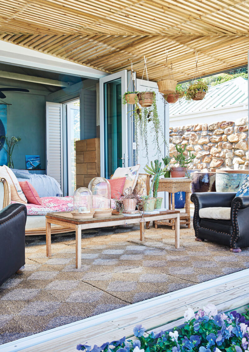 Repurposing furniture and unique finds for their event business is the “ultimate enabler,” Dané explains, and many of the items that now live in the cottage are lifted from their catalog of creations. The same philosophy extends to the kitchen, where most of the cabinets and the cupboards doors are made from repurposed shutters or screens and fabricated by Dane’s brother, Theunis.