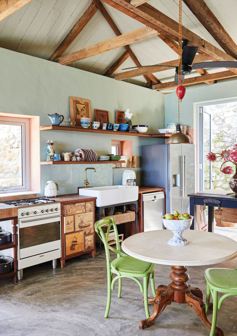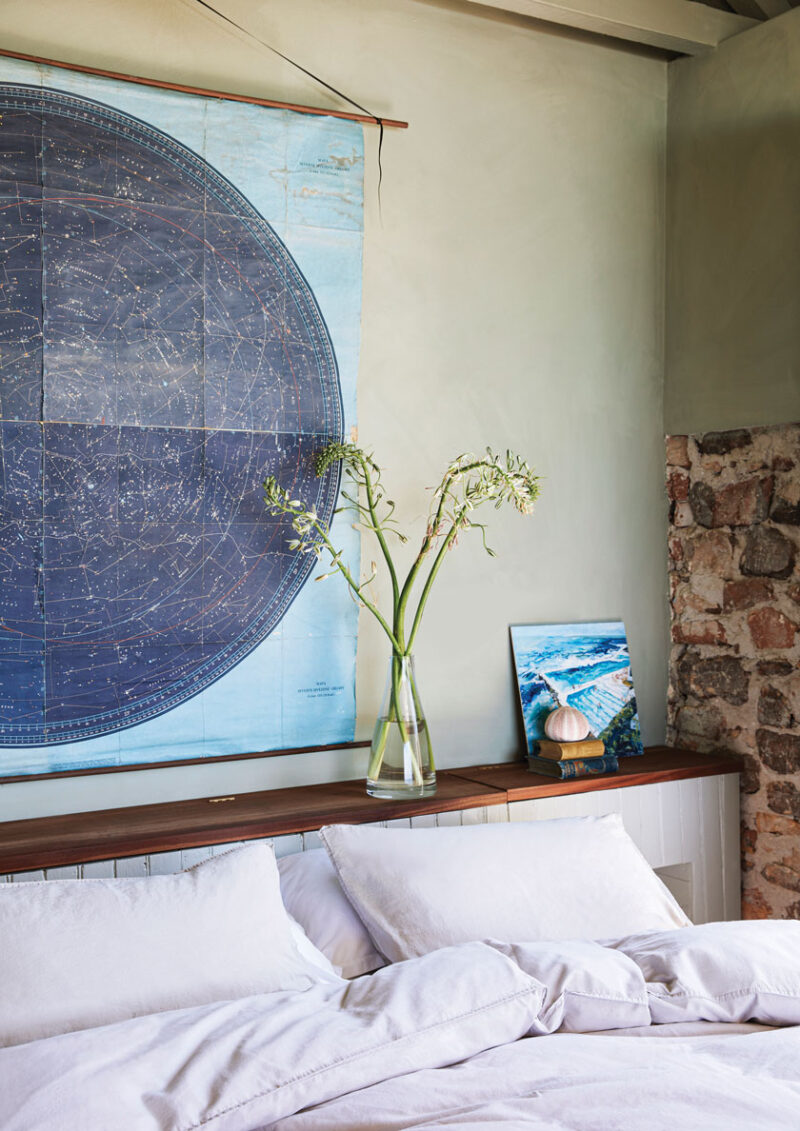 Shelves are open (a practical decision to beat the moisture-heavy sea air) and display treasured pieces that give the cottage an authentic feel and keep it true to its roots. (“I’m still a bit of a kid,” laughs Dané. “I like things dreamy and fun.”)