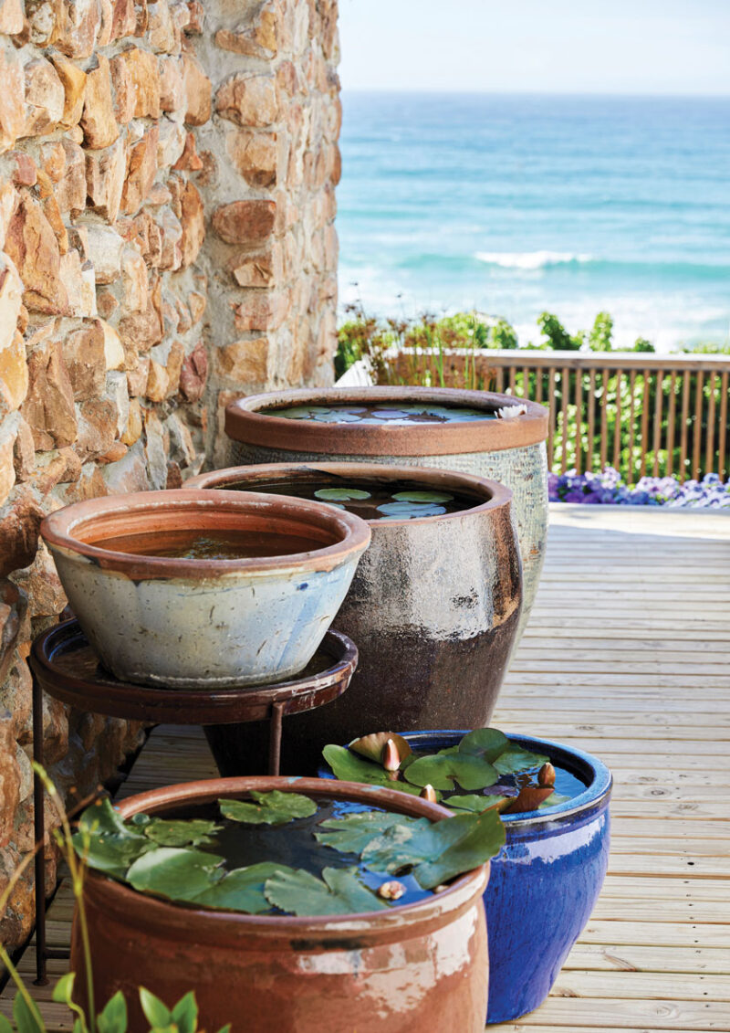 With the combination of the lush garden setting, stone terraces topped with chalky, white paint and the airiness of the expansive deck space, you can’t help being mentally transported to the Mediterranean.