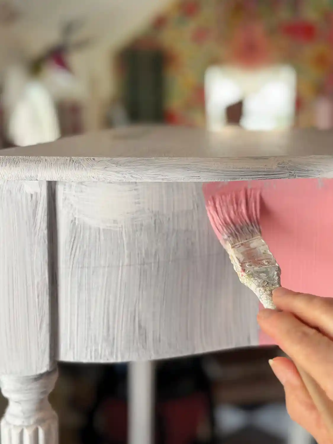 After priming, I brushed on Impatient Pink by Sherwin-Williams. Watching the pink come to life is my favorite part of any project -it’s where personality really begins to show.